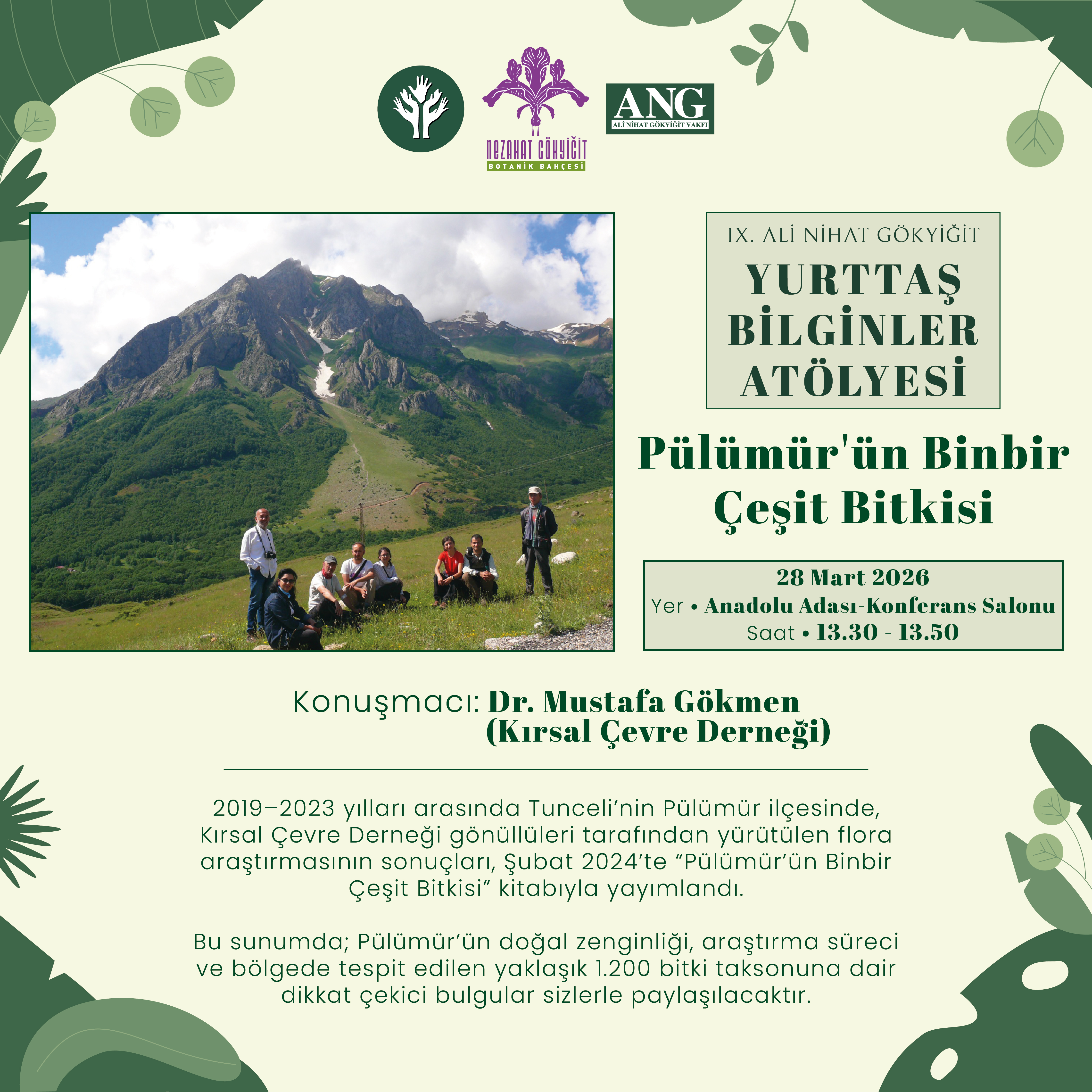 | 13.30 – 13.50 | Mustafa Gökmen: Pülümür’ün Binbir Çeşit Bitkisi | Anadolu Adası – Konferans Salonu |