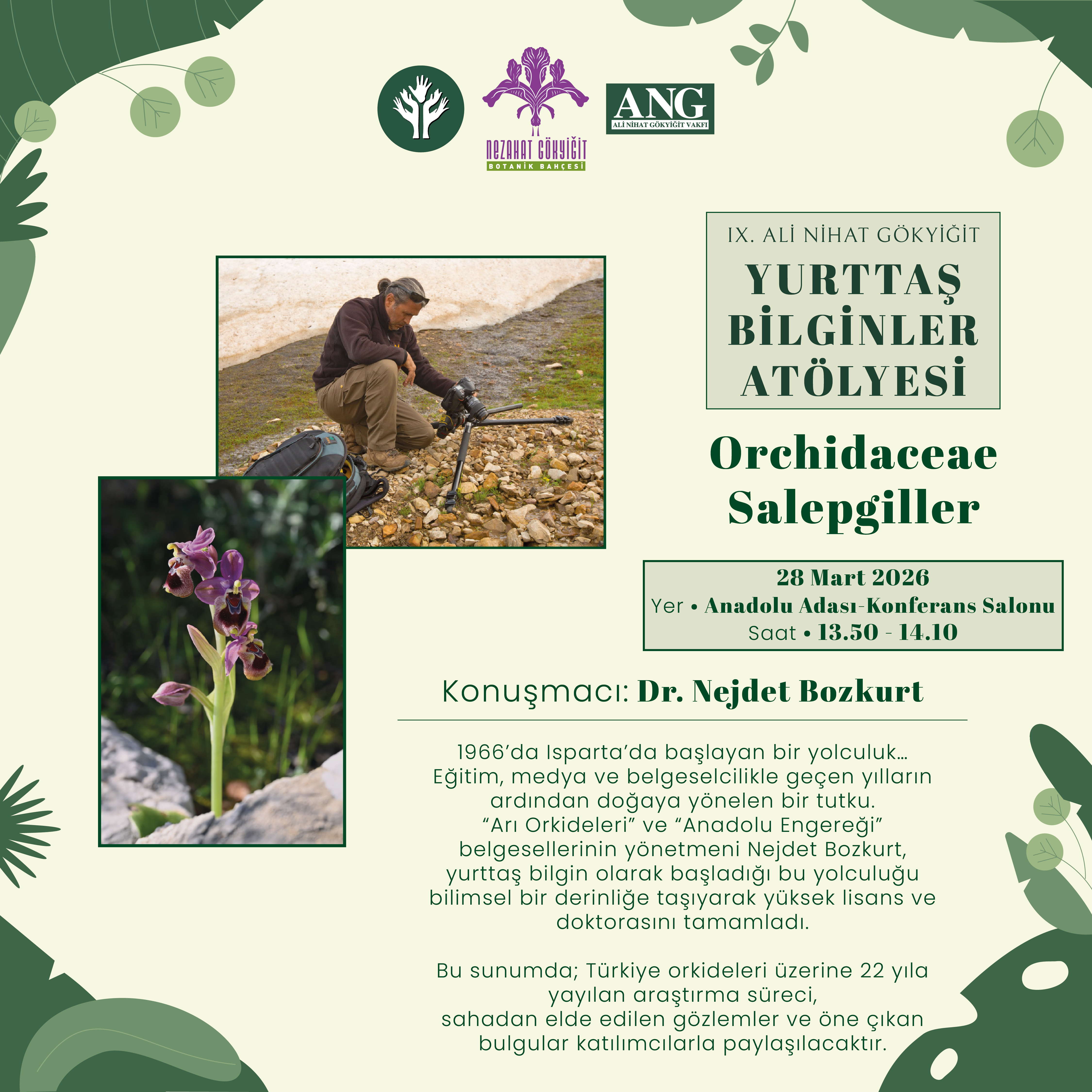 | 13.50 – 14.10 | Nejdet Bozkurt: Orchidaceae / Salepler | Anadolu Adası – Konferans Salonu |
