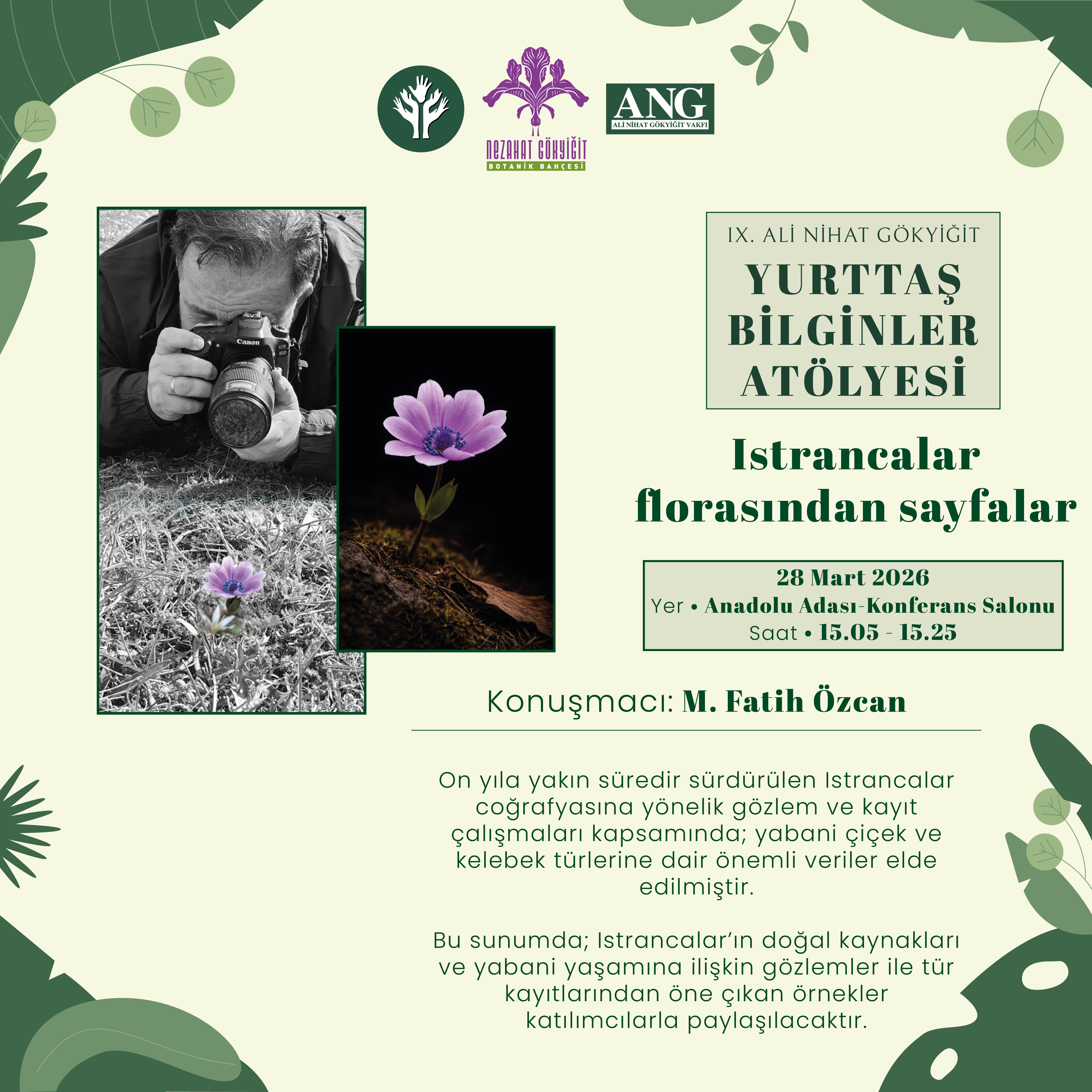 | 15.05 – 15.25 | M. Fatih Özcan: Istranca Florası’ndan Sayfalar | Anadolu Adası – Konferans Salonu |