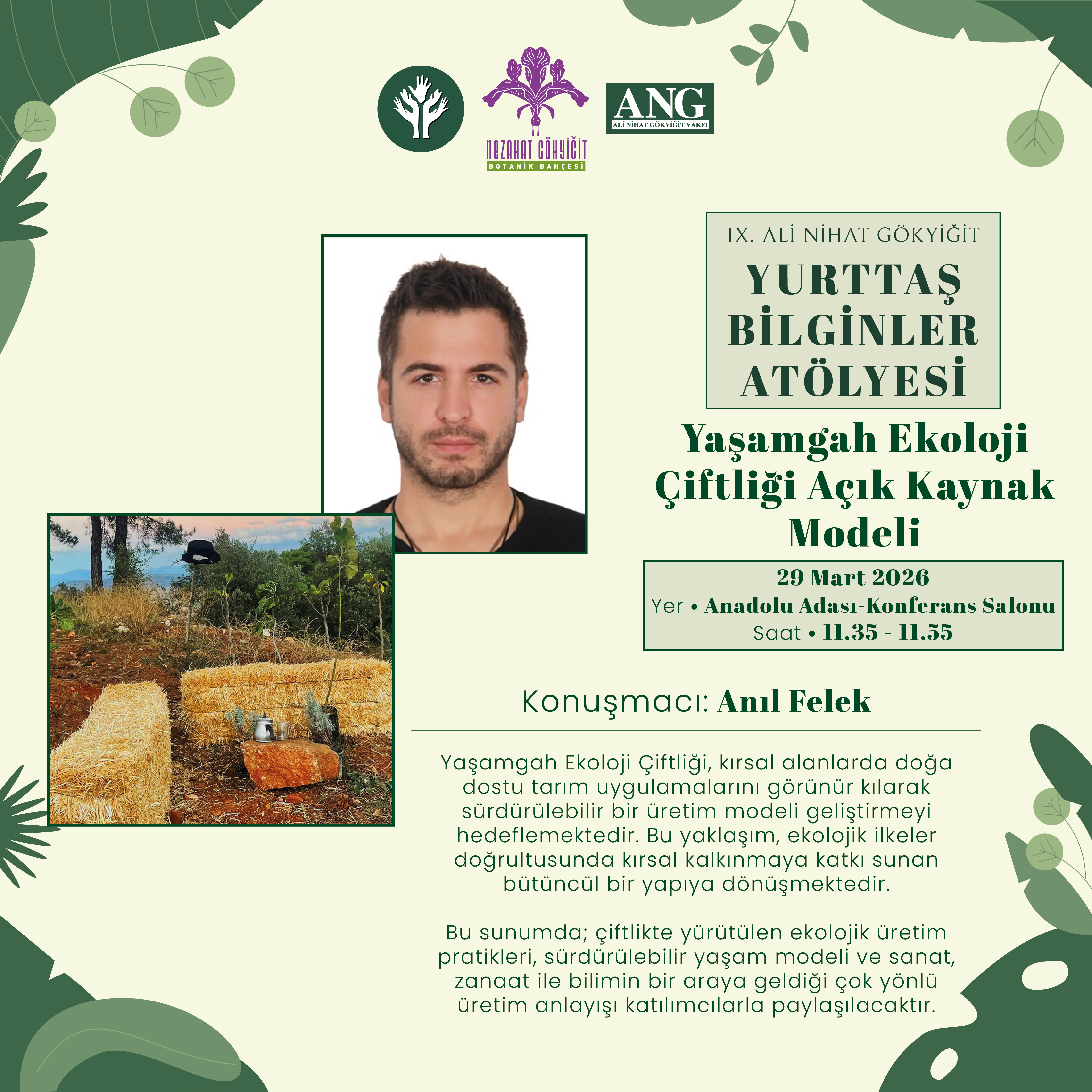 | 11.35 – 11.55 | Anıl Felek: Yaşamgah Ekoloji Çiftliği | Anadolu Adası – Konferans Salonu |