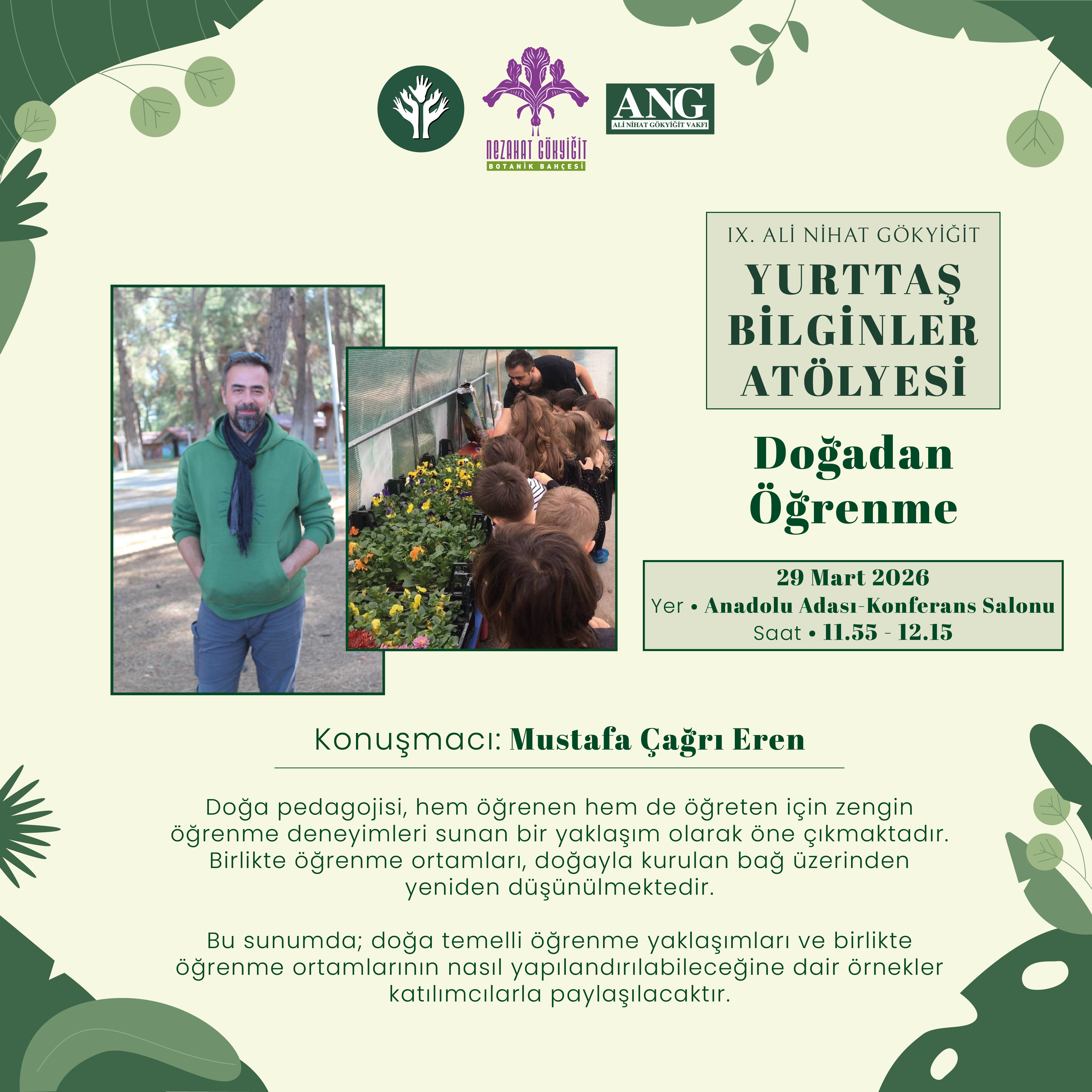 Değerli Yurttaş Bilginler, Nezahat Gökyiğit Botanik Bahçesi olarak; doğaya ilgi duyan, merak eden, gözlem yapan ve öğrenme sürecine aktif olarak katılmak isteyen bireyleri bir araya getiren Yurttaş Bilginler Atölyesi’ni her yıl düzenli olarak gerçekleştirmekten mutluluk duyuyoruz. Yurttaş bilgin; mesleği bilimle ilgili olmasa da, doğayı anlamaya istekli, gözlem yapan, araştıran ve öğrendiklerini paylaşan kişidir. Bitkilerden mantarlara, böceklerden hayvanlara; toprağın içindeki görünmeyen canlılardan ekosistemlerin işleyişine uzanan doğa, yurttaş bilimiyle daha kapsayıcı ve katılımcı bir şekilde ele alınmaktadır. Günümüzde doğa bilimlerinin karşı karşıya olduğu sorunlar, yalnızca uzmanların değil; gönüllülerin, yerel gözlemcilerin ve meraklı bireylerin katkısını da gerekli kılmaktadır. Bu nedenle yurttaş bilimi çalışmaları dünya genelinde giderek yaygınlaşmakta, bilimsel bilginin üretiminde toplumsal katılımı güçlendirmektedir. Nezahat Gökyiğit Botanik Bahçesi olarak, doğa bilimleri alanında yürüttüğümüz bu atölye serisiyle; doğayı gözlemleyen, kayıt altına alan, sorgulayan ve koruma bilinci geliştiren bireylerin sayısını artırmayı hedefliyoruz. Atölye süresince katılımcılara, belirlenen tema doğrultusunda sunumlar, uygulamalar ve deneyim paylaşımları sunulmaktadır. Doğaya ilgi duyan, bu alanda kendini geliştirmek isteyen ve bilimsel sürece katkı sunmaya hevesli herkesi, IX. Yurttaş Bilginler Atölyesi’ne davet ediyoruz.
