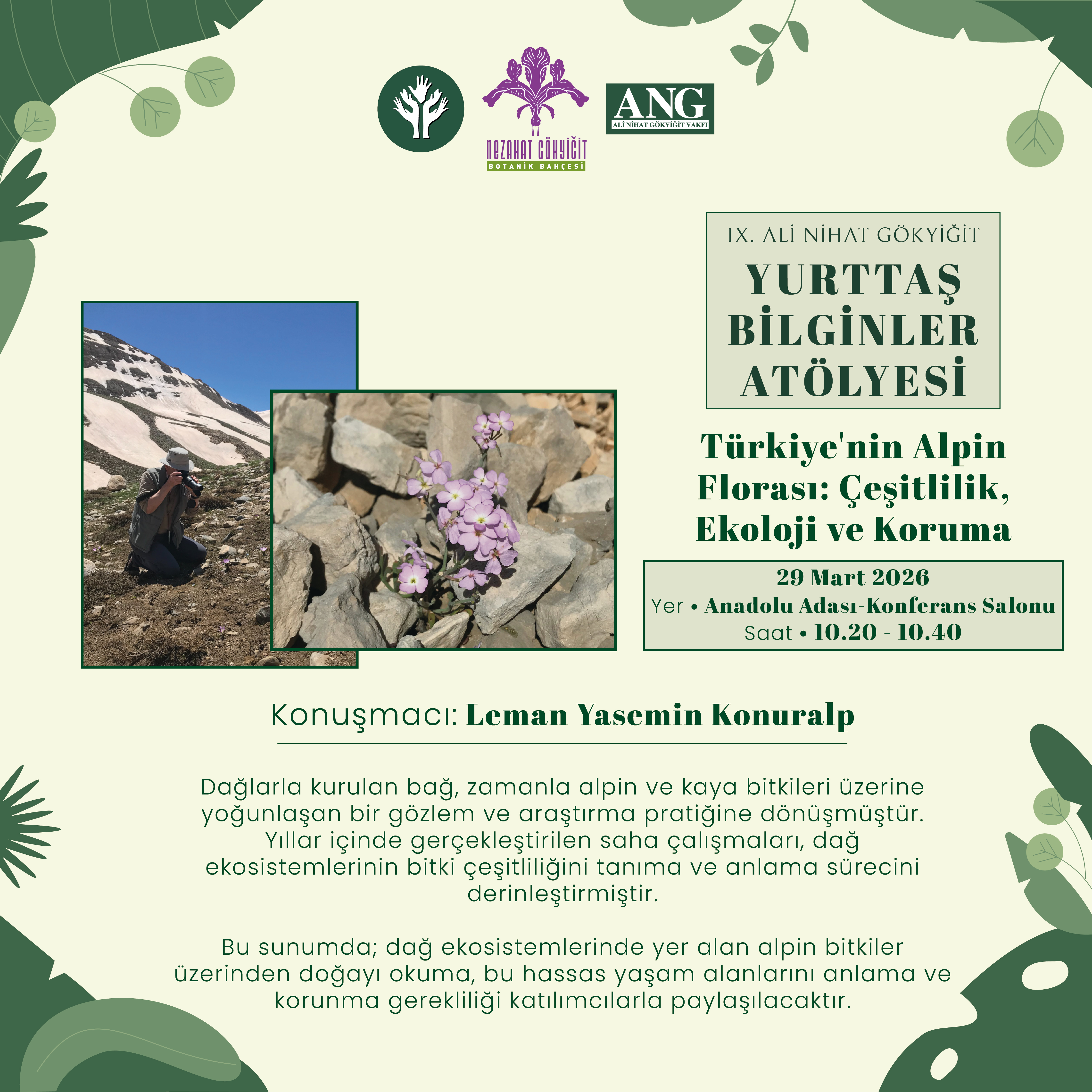 | 10.20 – 10.40 | Yasemin Konuralp: Türkiye’nin Alpin Florası | Anadolu Adası – Konferans Salonu |