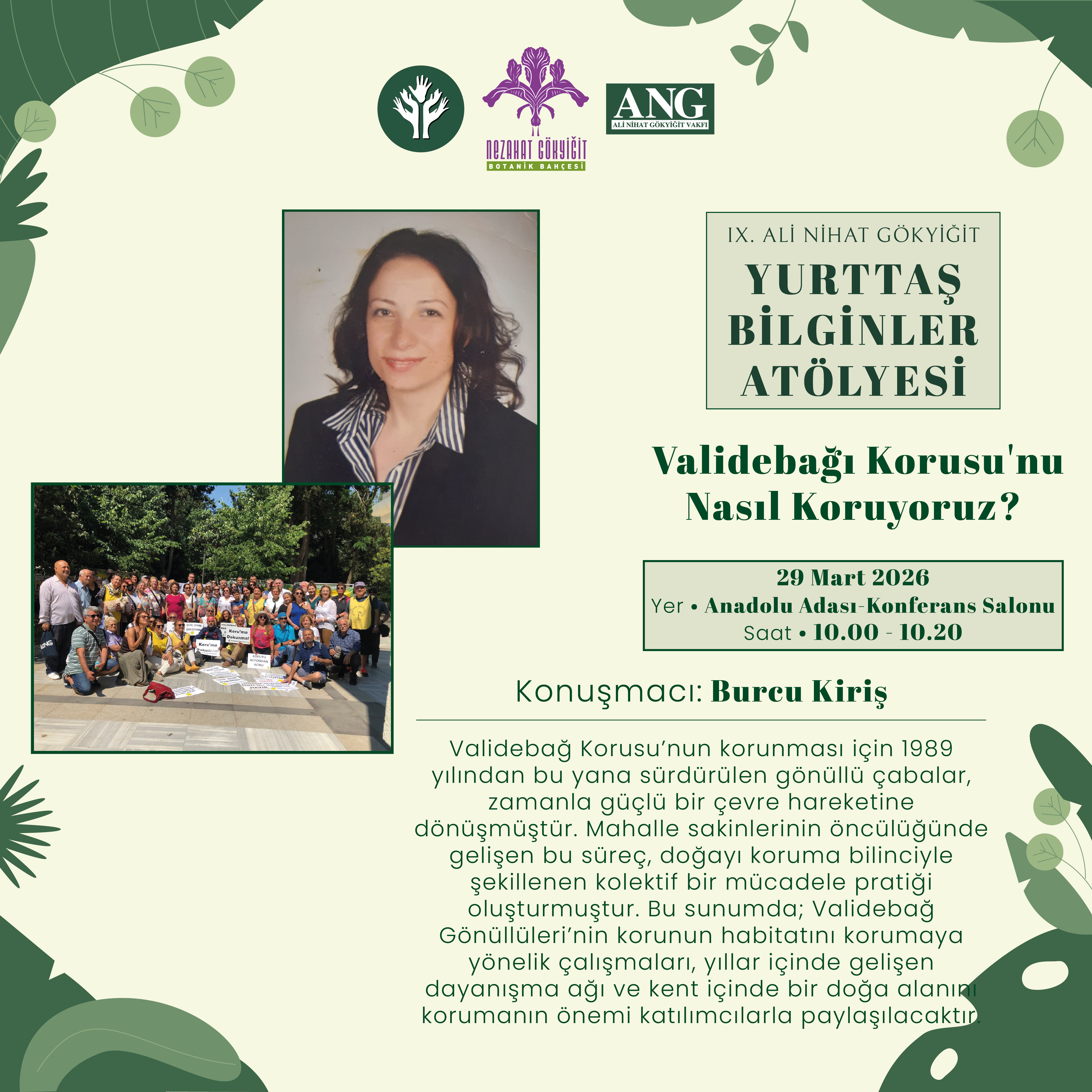 | 10.00 – 10.20 | Burcu Kiriş: Validebağı Korusu’nu Nasıl Koruyoruz? | Anadolu Adası – Konferans Salonu |
